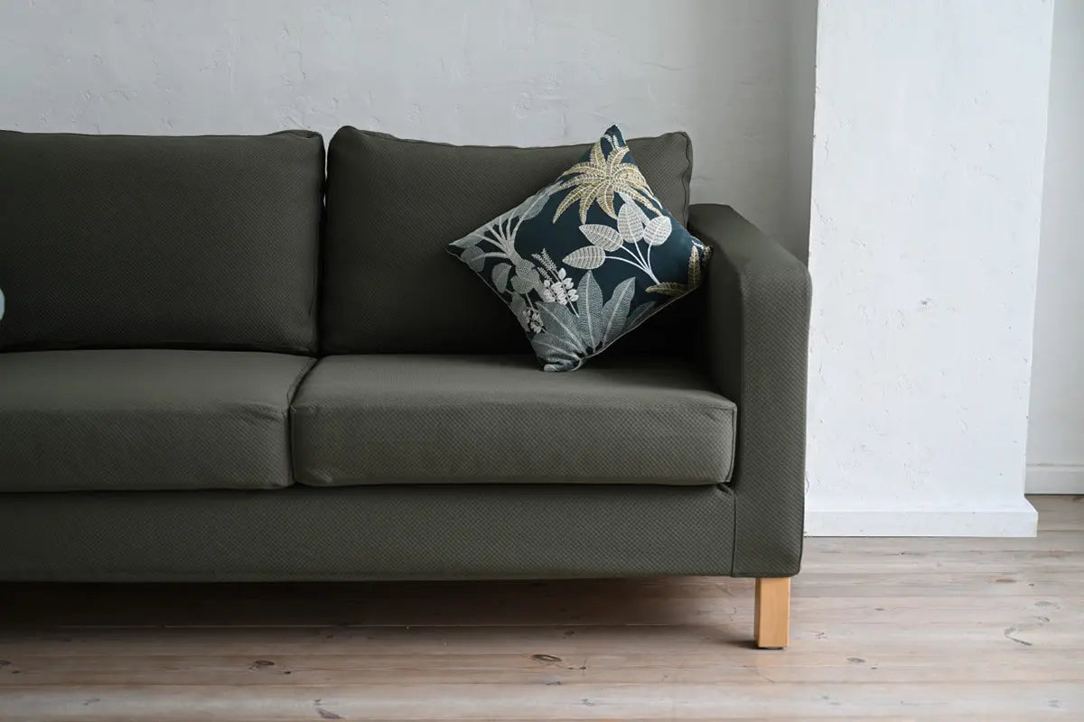 重量感のあるしっかりとした生地です。ソファに馴染みやすい生地ですので、カバーリングに最適です。